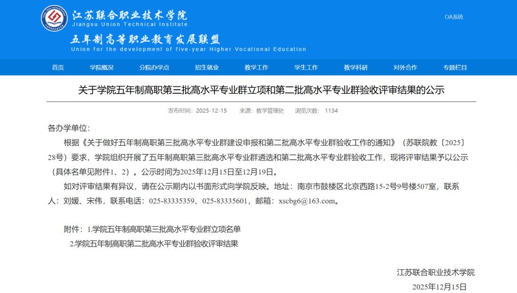 近日,根据江苏联合职业技术学院发布的《关于学院五年制高职第三批高水平专业群立项和第二批高水平专业群验收评...