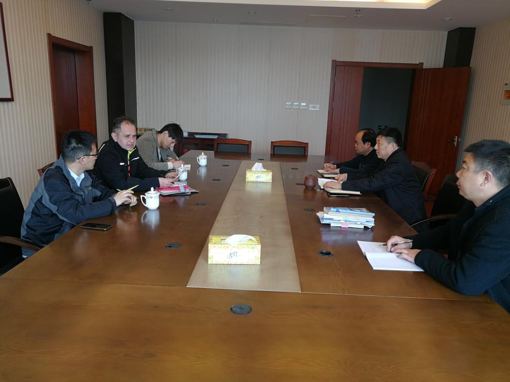 2021年3月29日上午,如东中专余飞校长、陈建副校长与三一帕尔菲格代表在如东中专715会议室共商小企融合共建实训基地大计。