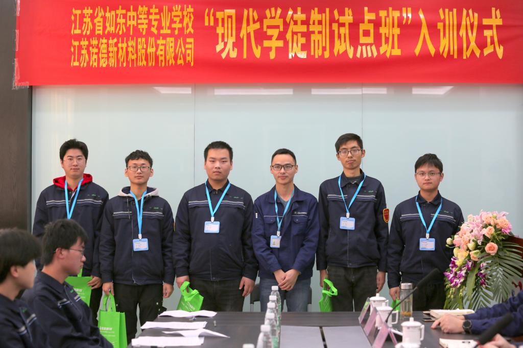为了弘扬现代学徒制理念及传统拜师文化,11月11日下午,江苏联合职业技术学院如东分院全面推进现代学徒制工作现场会暨诺德新材学徒班入训仪式在江苏诺德新材料股份有限公司会议室举行。
