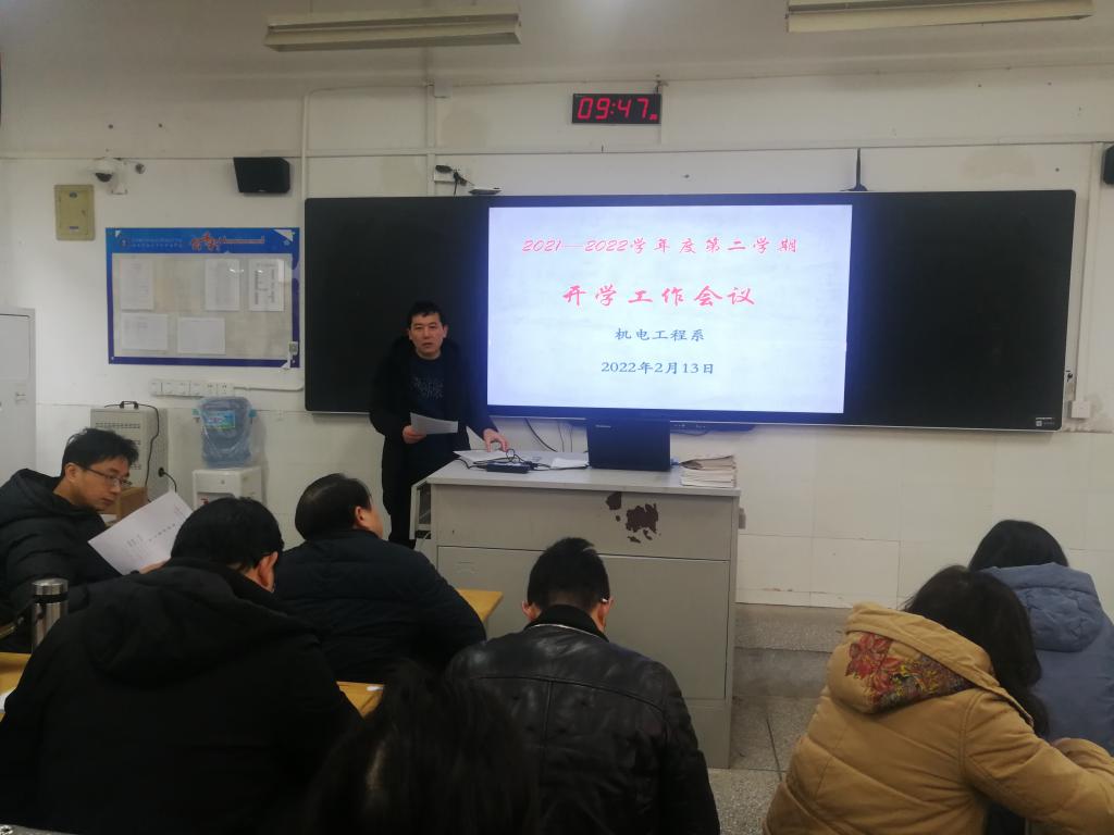 2月13日上午9:00,机电工程系全体教学人员齐聚在311教室,召开机电工程系2021-2022学年度第二学期开学工作会议。会议由周卫东主任主持。