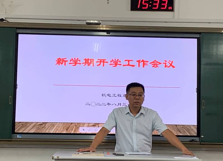 8月31日下午3:30,机电工程系2022-2023学年第一学期开学工作会议在331教室举行。系部全体教学人员参加了会议。会议由周卫东主任主持。