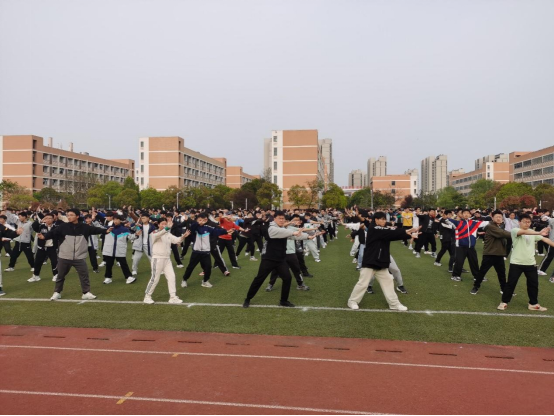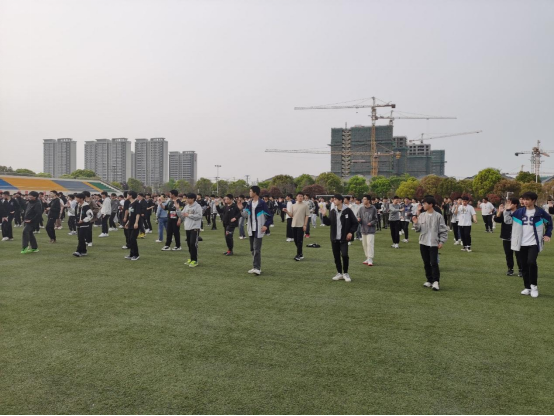 10月17日下午第三课,集结全体学生在大操场训练太极拳。