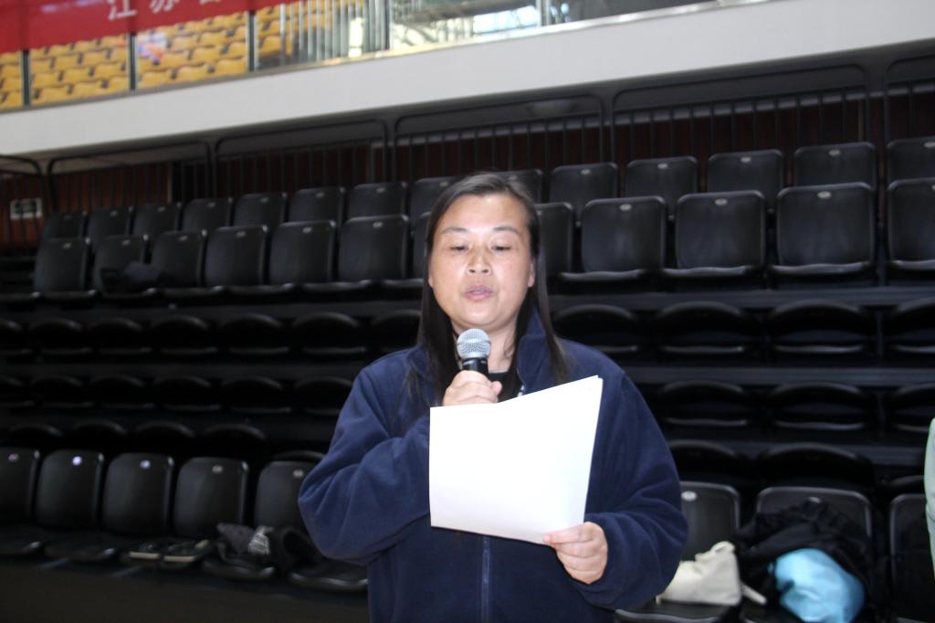 本次比赛的裁判长、体育组组长汪华老师宣读了比赛规则和要求。本次比赛采用团体对抗赛,第一阶段抽签分两组单循环,两队打满7场,为七局四胜制,首次在第七场安排双打。第二阶段交叉比赛,排出名次。
