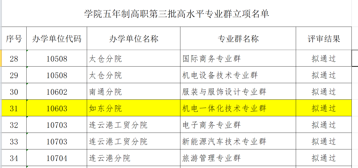 近日,根据江苏联合职业技术学院发布的《关于学院五年制高职第三批高水平专业群立项和第二批高水平专业群验收评审结果的公示》,我校机电一体化技术专业群拟通过第三批高水平专业群立项。该立项是对学校专业建设与人才培养质量的肯定,将进一步推动专业群在课程建设、教学改革、产教融合等方面提质增效,助力学校高质量发展。