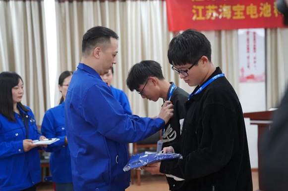 ▲带教师傅代表——6号车间主任孙亮发言。孙亮主任毕业于如东分院,自2013年进入海宝电池以来,凭借刻苦钻研的精神、不懈努力的学习,逐渐脱颖而出,走上领导岗位。