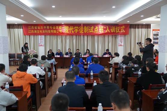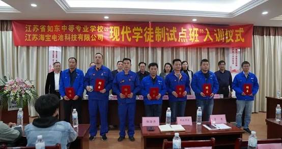 县教体局副局长王淑娟代表县教体局对如东分院与海宝电池科技有限公司之间的校企合作迈上新台阶,表示热烈的祝贺。党的十八大以来,习近平总书记就加快发展职业教育作出了一系列重要指示,把职业教育摆到了更加突出的重要位置。此次入训仪式是如东分院与海宝电池校企合作中的一项重要工作,对进一步提升人才培养质量、促进企业发展有着重要意义。她建议:学校和企业项目负责人要科学设计项目实施方案,并在实践中不断优化,提高人才培养质量和针对性;校企双方要发挥主观能动性,结合自身优势资源,加强共享共用、共建共管,真正实现协调育人;学徒们要积极利用各方平台,不断充实自己、提升自己,筑牢大国匠心铸梦,实现技能报国;校企双方要不断总结提高,积极探索产学研结合的新路子、新方法,进一步形成长效运行机制。