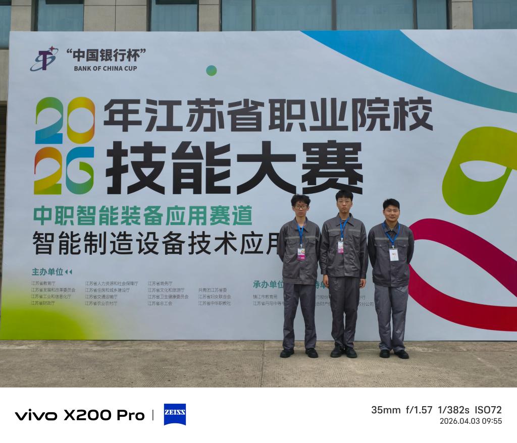 2026年4月2日-4日,江苏省职业院校技能大赛“智能制造设备技术应用”赛项在江苏省丹阳中等专业学校举行。我系邹源清、张丁瑞、徐吴蒋浩等三位同学组成的团队荣获此赛项二等奖。