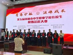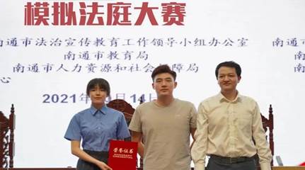 10月14日,在第五届南通市中等职业学校在校生模拟法庭大赛中,如东中专代表队荣获金奖。我系18机电高职2班李合庆获“优秀模拟法官”称号,18机电高职1班吴伊凡获“优秀模拟辩护人”称号。