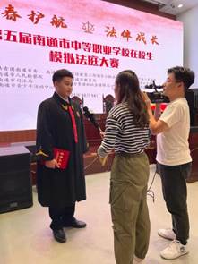 在大赛结束之后,南通广播电视台采访了李合庆同学,李合庆同学谈了对这次大赛的感受:通过参赛受益匪浅,以后一定会更好的学法,要争做懂法守法的好学生,做好带头模范作用。